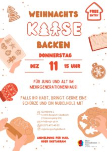 Am Donnerstag, den 11.12.2025 backen wir in der Zeit von 15-17 Uhr Kekse. Wir freuen uns auf eure Anmeldung!